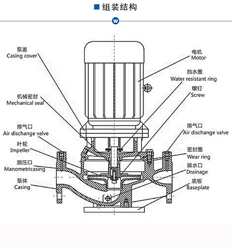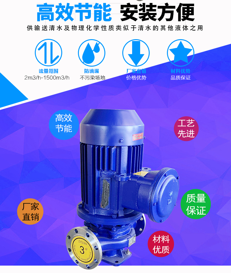 WJLG管道泵為立式結(jié)構(gòu),進(jìn)出口口徑相同,且位于同一中心線上,可象閥門一樣安裝在管路之中,外形緊湊美觀,占地面積小,建筑投入低,如加上防護(hù)罩則可置于戶外使用。葉輪直接安裝在電機(jī)的加長軸上,軸向尺寸短、泵與電機(jī)軸承配置合理,能有效地平衡泵運(yùn)轉(zhuǎn)產(chǎn)生的徑向和軸向負(fù)荷,從而保證了泵的運(yùn)行平穩(wěn),振動噪音很低。安裝檢修方便面,無需拆動管路系統(tǒng),只要卸下泵聯(lián)體座螺母即可抽出全部轉(zhuǎn)子部件??筛鶕?jù)管路布置的要求采用泵的豎式和橫式安裝。ISG管道泵分基本型、分流型、切割型,材質(zhì)可選:鑄鐵、201、304、316L,等多種規(guī)格。