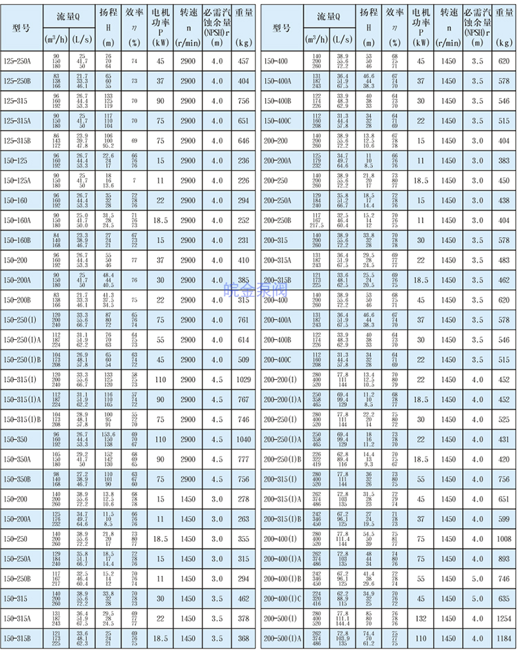 皖金泵閥不銹鋼臥式離心泵主要參數(shù):