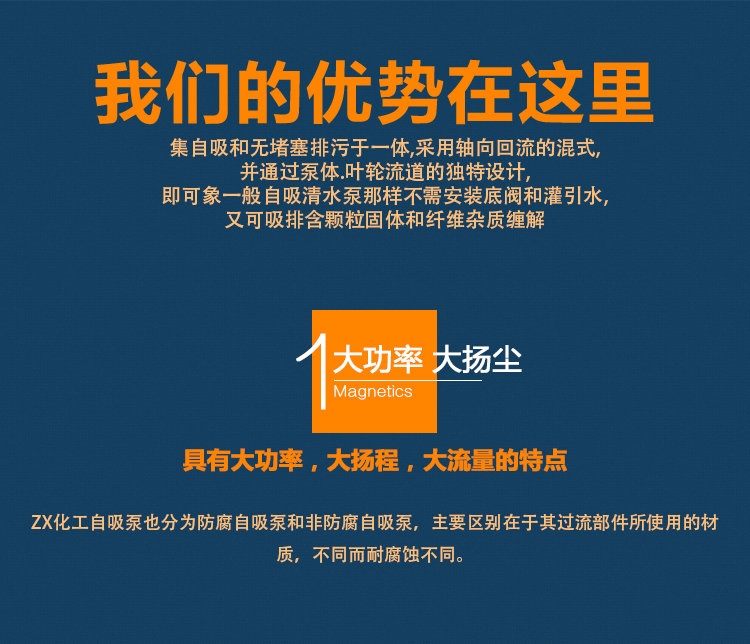 不銹鋼離心自吸泵又稱其為金屬自吸泵、離心自吸泵、耐腐蝕自吸泵,ZX不銹鋼離心自吸泵沒有逆止閥,結構簡單,運行可靠,排量大,性能好。特點是無需安裝底閥,內部結構簡單,適用于環保、消防、制藥、化工、電力、印染、采礦、電鍍、酸洗、造紙等行業。